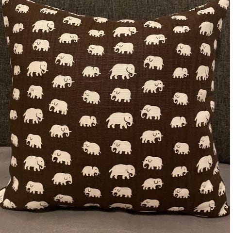 Ett dubbelsidig nysytt gult elefant 47*50cm i tyg köp på Svenskt tenn . Alla sömmar är overlockade och det är blixtlås nertill.