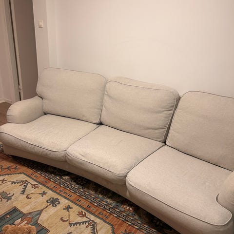 Hej! Skänker min Howardsoffa som jag köpte begagnad av en kompis för ca 5 år sen. Den är i bra skick och har inga skavanker eller hål i tyget. Ludd överdragen kan tas av för tvättning. Bortskänkes pga flytt och jag är sugen på en ny soffa. Hämtas i Handen på kvällstid om det är en vardag, om det är helg så kan du hämta när som.