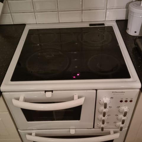 Cylinda glaskeramikhällar med flera kokzoner. Passar för installation i kök och erbjuder en slät yta för enkel rengöring. Vit färg och standardmått för att passa de flesta köksmiljöer. Två tvättmaskiner. En tumlar