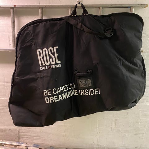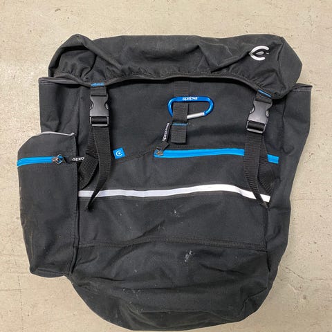 Svart cykel väska med fäste, tillverkad i slitstarkt material. Väskan har flera fack och en genomskinlig plastficka. Fästet på baksidan möjliggör montering på olika ytor eller objekt.