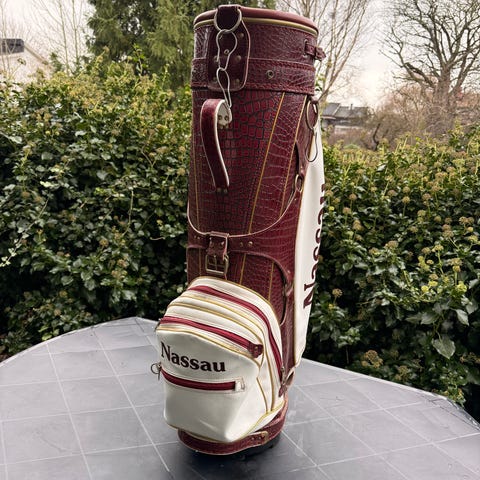 PGA Tour golfbag i svart färg med bärrem och stativfunktion. Designad för att bära och organisera golfklubbor under spel.