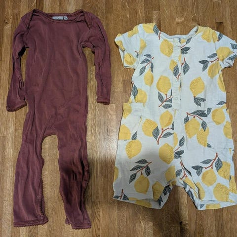 Stort klädpaket som innehåller 11 byxor, 3 tjocktröjor, 2 långärmade t-shirts och 12 långärmade bodies