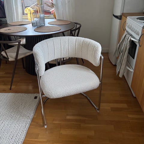 IKEA stol med vit klädsel i tyg. Passar för användning vid matbord eller som extra sittplats i hemmet.