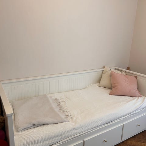 Säljer en IKEA Hemnes dagbädd i vitt, i fint och stabilt skick. Flera märken finns dock på sängens som påverkar inte funktionen.