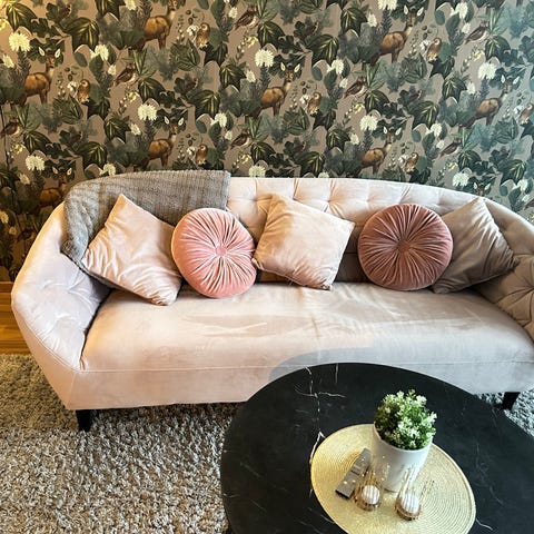 Soffa: 210 cm bred, 100 cm djup
