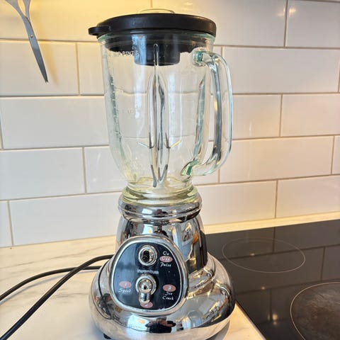 Wilfa mixer med glasbehållare i svart färg. Utrustad med flera hastighetsinställningar och en vridbar ratt för kontroll. Passar för blandning av olika ingredienser i köket.