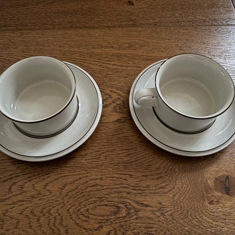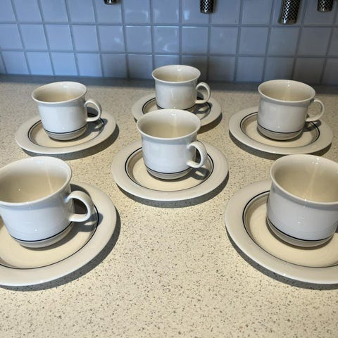 Iittala kaffekoppar från serien Arabia Arctica med tillhörande fat, 6 st. Fina nätta klassiska kaffekoppar. 1 extra kaffekopp följer med (saknar fat).