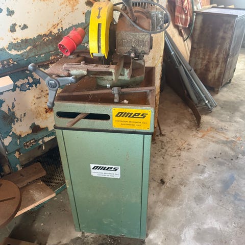 Milbea 5 Sn/8 R profilklipo för bearbetning av metallmaterial. Maskinen är avsedd för klippning av metall och är monterad på ett stativ för stabilitet och användarvänlighet. Klarar t.ex upp till 20mm rundstav, samt diverse andra profiler. Fina skär.
