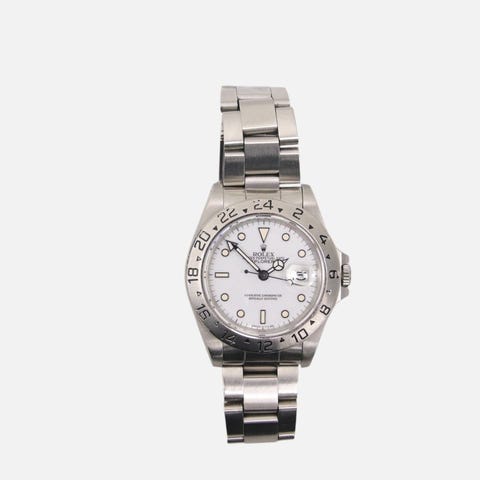 Säljer en Rolex Explorer II - ref 16570. Denna klassiska referens producerades från 1989 - 2011. Detta exemplar är ett av de senare i produktionslinjen, från 2008. Det är enligt mig den optimala versionen då den har charmen från de 5-siffriga caset, länk osv men med det nyare 3186 urverket (installerades bara i de som producerades 2008-2011) samt rehault (ingravering på insidan av ringan), se bilder.