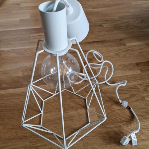 Säljer denna tidlösa pendellampa i vit metall från Markslöjd nypris 1400:-