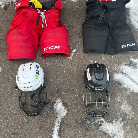 CCM hockeyutrustning – 2 hjälmar Tacks 70(Senior S & Junior) + hockeybyxor