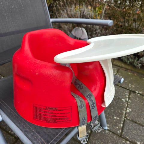 Grön Bumbostol med bricka. Innan bebis kan sitta själv bumbostolen perfekt!