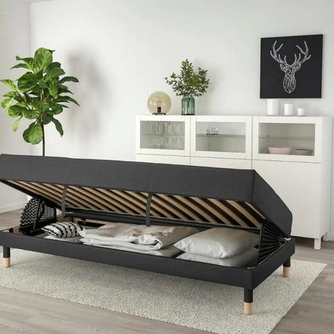 En soffa som kan läggas ner till en dubbelsäng, från IKEA.