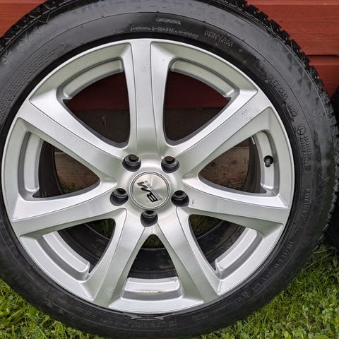 Då var det dags att sälja min uppsättning (4 st) fälgar med däck då bilen de satt på är såld. Dessa passar bland annat på Golf 4 (som min Bora på bilderna). Det medföljer navcirkeladaptrar/navringar för Golf 4-platform.