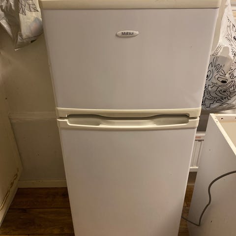 Matsui kombiskåp med kyl- och frysfack i vit färg. Passar för förvaring av livsmedel i hemmet.