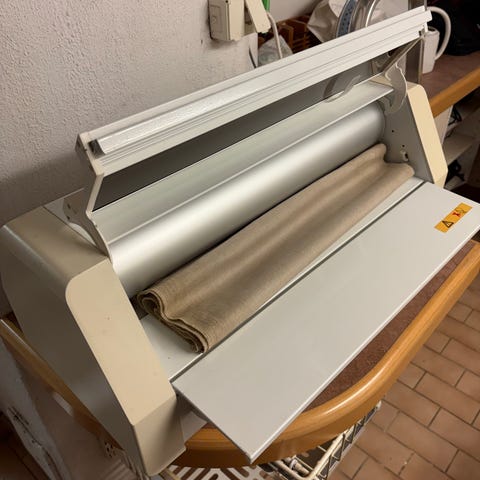 Mangel från 80 talet. Inte blivit använd på många år, har endast stått oanvänd i tvättstugan men funkar felfritt. Finns i Varberg.