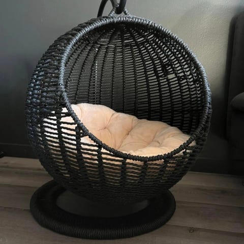 Antik trästol med svart finish. Stolen har ett detaljerat ryggstöd och är försedd med ett vitt pälstyg som är istället för sitsen. Passar som liggmöbel