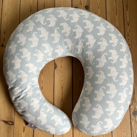 Har använts både vid amning/flaskmatning och som mysigt stöd där bebisen legat i kudden i soffan eller på golvet.