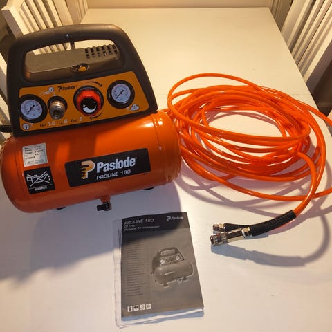 FSD MEC 90S kompressor med en effekt på 3 kW och en spänning på 220 V. Utrustad med motor typ A11 IP 55 och en rotationshastighet på 2725 RPM. Kompressorn är svart och har en kapacitet som lämpar sig för olika användningsområden där tryckluft krävs. Slangvinda väggmonterad längd ca 10m.
