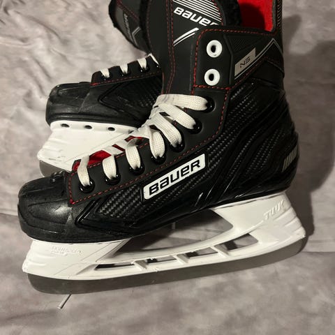 Bauer Ishockeyskridskor för barn/vuxen i storlek 37. Skridskorna är svart med gröna detaljer och har ett fodrat inre för komfort. Designade för ishockey med robust konstruktion och vassa blad för god prestanda på isen. Skridskorna har använts vid ett fåtal tillfällen, är i mycket gott skick.