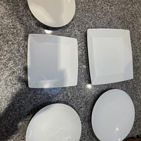 Vitt porslin med platinakant Design har en räfflad vertikal struktur på undersidan av köpen o på fatens kanter