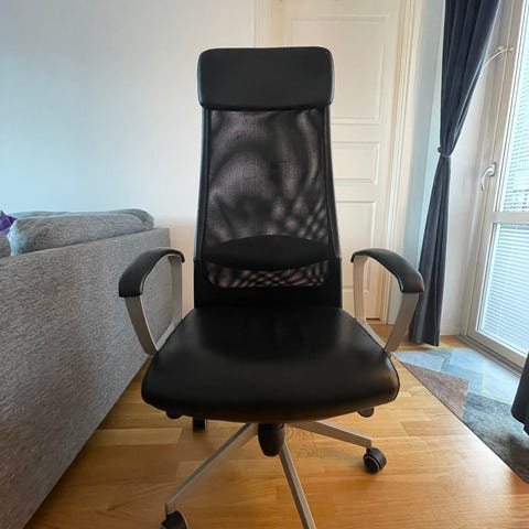 Skön kontorsstol med skinnsits och meshryggstöd