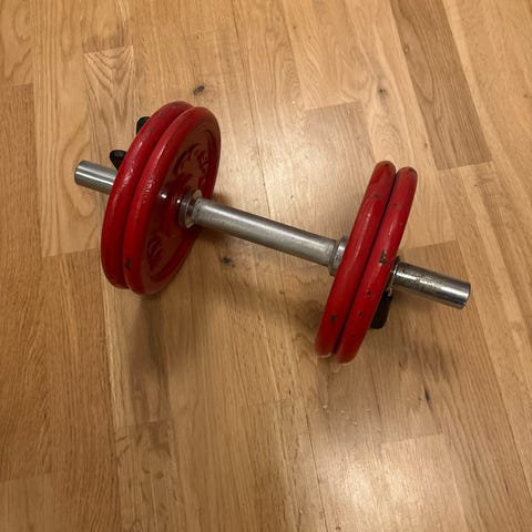 Detta innehåller en rockring, 1 st 2 kg vikt och en vikt med 8 kg
