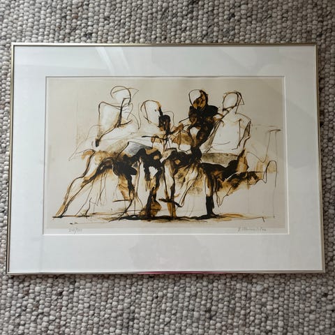 Litografer av Yrjö Edelmann, 2 st, inramade, numrerade, mått 65 cm x 54 cm. Finsk-svensk konstnär känd för sina fotorealistiska målningar föreställande inslagna paket. Säljes 6000kr för bägge.