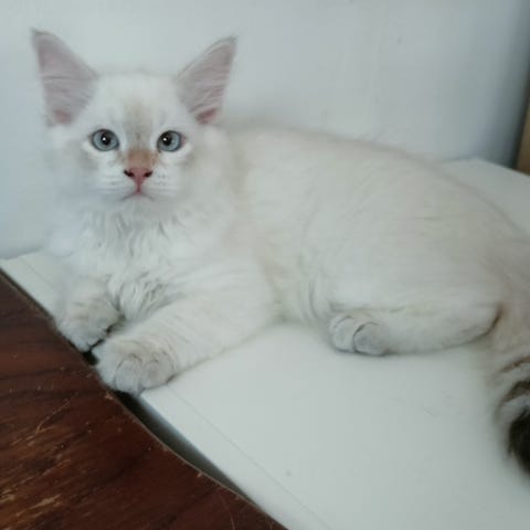 Hon är busig på ett charmigt sätt, nyfiken och positiv till hantering. En katt med fin närvaro som passar dig som vill ha en social familjemedlem med egen personlighet.