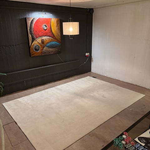 väldigt bra matta, ser inte snygg ut på kameran, men känns faktiskt väldigt bekväm och lite lyxig, grå+silver, korta och mjuka ytor.