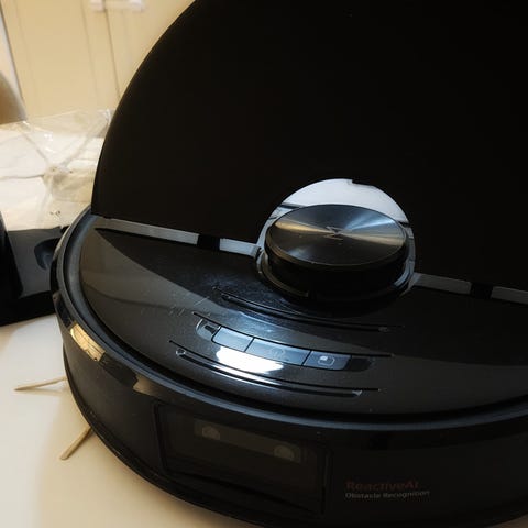 Både dammsuger och moppar golven. Moppen har en funktion som "skrubbar" lite i sidled medans den kör. En gratis nedladdningsbar app styr genom app mappa upp rummen. Bra begagnat skick, sparsamt använd.