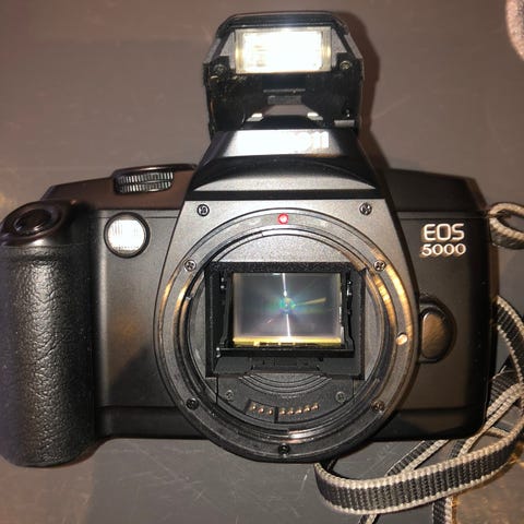 Canon EOS 1000 är en analog systemkamera från Canon. Den är avsedd för fotografering med film och har klassiska manuella inställningar för exponering och fokus.Batterier behöver bytas