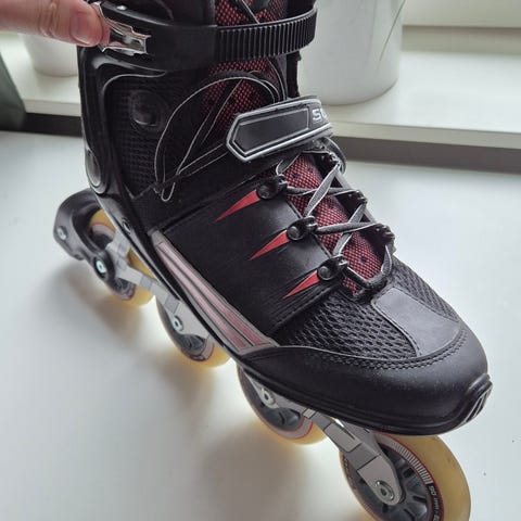 K2 Kinetic 80 Pro M rullskridskor i storlek 46. Skor med svart och grön färg, anpassade för rullskridskor och inlines. Designade för vuxna användare.