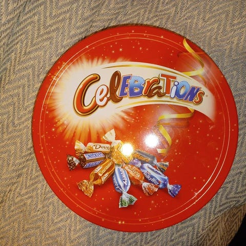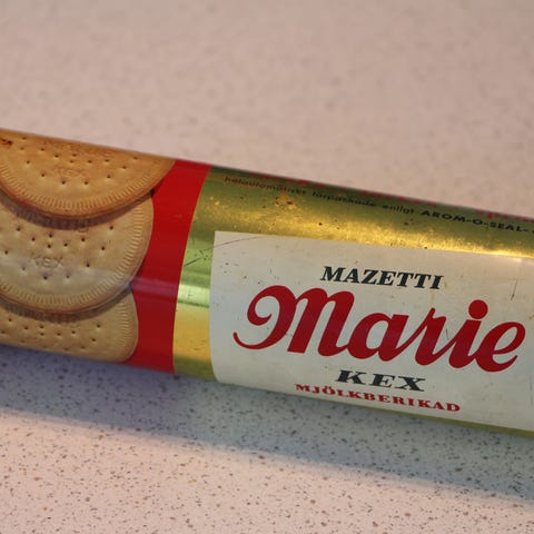 Gammal plåtburk / kakburk Linköpings Konfektyr