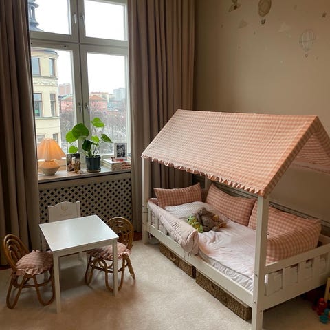 Otroligt uppskattad fin säng med "tak" kallas hussäng.