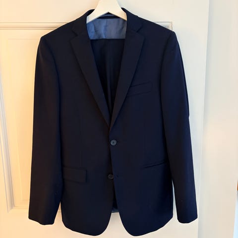 Jag har en jättefin kostym. De e i st M och där e inga fel alls på den.