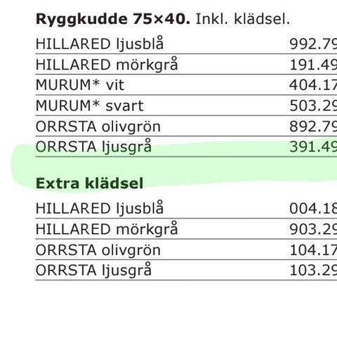 1 oanvänt ryggstöd till Vallentuna säljes.