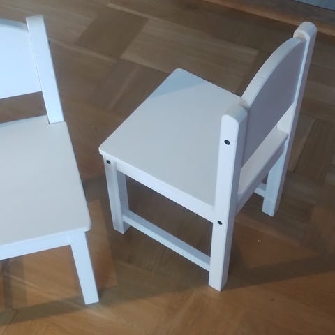 Bord och stolar från Ikea sundvik i ljusgrå färg. Läs mer på Ikeas hemsida om måtten.