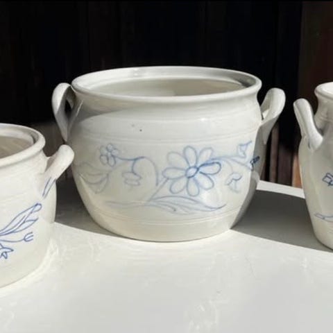 Rörstrand kruka med blå blomdekor
