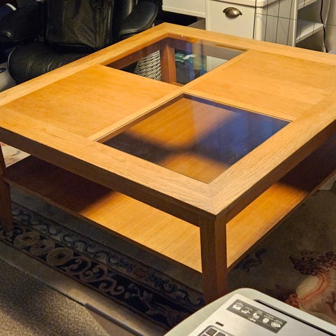 Ett bra matbord från Ikea. Cirka 170 cm långt utan iläggsskiva, ca 214 med skiva. Ett par skador på laminaten på bordsskivan, i övrigt i bra skick. Skänkes mot avhämtning i Lyckeby. Stolar ingår ej.