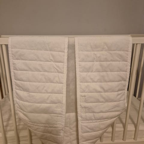 Madrass 60*120*5 cm från Ikea, ser inte vilken serie den är ifrån men utifrån bilder på hemsidan ser det ut att vara Pluttig. Madrasskydd från Ikea Lenast.