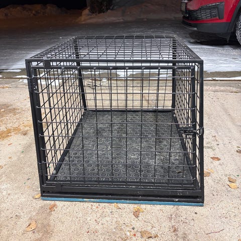 Bur med mått: h 50cm, b 48 cm, d 69 cm. Passar mindre hund.