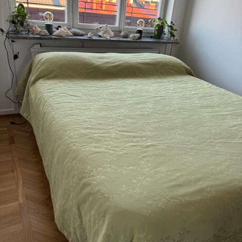 Mått på säng gaveln 140cm bredaste 150cm, höjd :