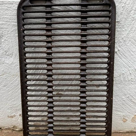 Eldgaller i svart metall med måtten 58 cm i längd, 28 cm i bredd och 16 cm i höjd. Används för att hålla ved i en öppen spis eller eldstad för bättre luftflöde och förbränning.
