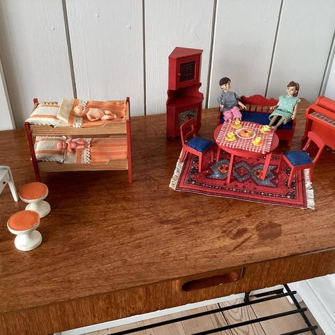 Säljer Lundby dockhus i jättefint skick med alla möbler, 8 st dockor, lampor, tavlor och övrig inredning - allt i bra skick och varsamt använt.