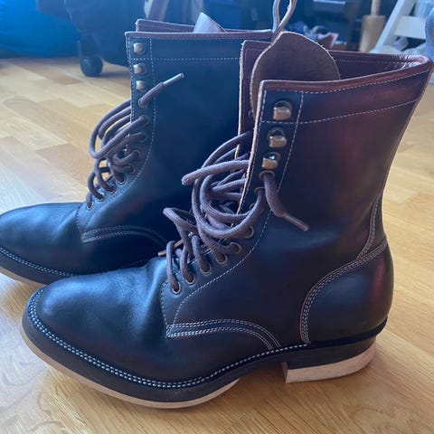 Skorna har så kallad kommandosula, vilket ger bra grepp och gör dem väl lämpade för höst och vinter. Modellen är en derby boot i mörkbrunt kalvskinn med grain-struktur, vilket ger en något mindre formell siluett. Passar lika bra till jeans som till mer dressade outfits.