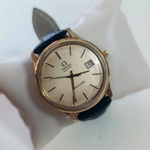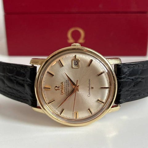 Omega Constellation är en herrklocka med en klassisk design. Den har en rund urtavla med datumvisning och en läderrem. Klockan är utrustad med analoga visare och en tydlig urtavla för enkel avläsning.