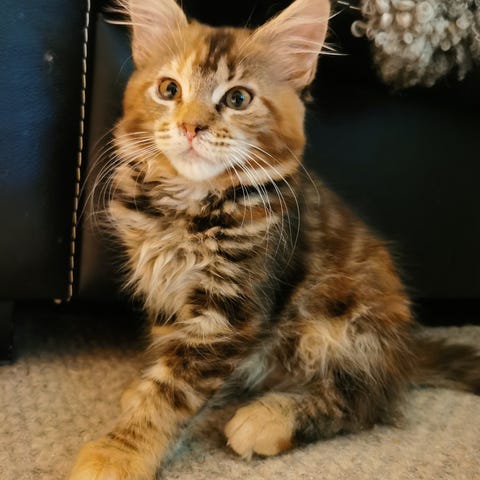 Puff finns i Mora där han är uppväxt med sin syster Piff, fem vuxna Maine Coon och två hundar. Han är van vid barn i olika åldrar och deltog i julfirandet med liv och lust