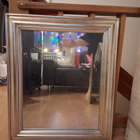 Oval spegel med träram.