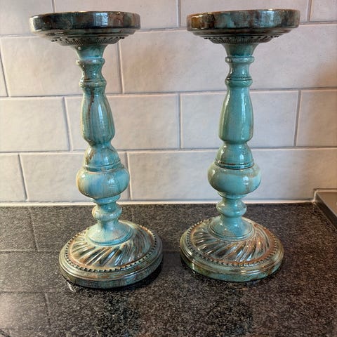 Vackra ljusstakar i ny skick , mått cirka 20 cm är väldigt ovanliga så speciella . Priset är för båda 600:- swich .